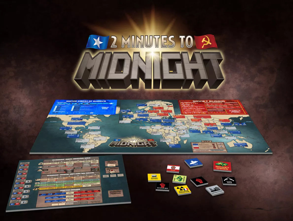 2 Minutes to Midnight is a fresh design exploring the cold war in 5-year turns starting in 1946 and running for 9 turns to 1990.