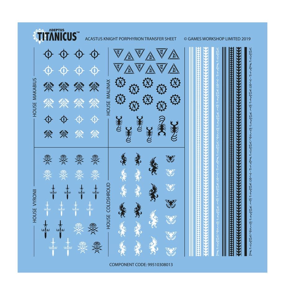 - 1x Adeptus Titanicus Acastus Knight Porphyrion Transfer Sheet