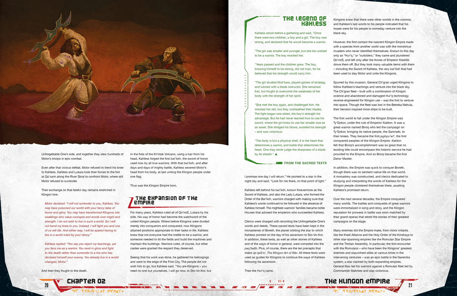 - An extensive study of the Klingon Empire, including its history, culture, worlds, society, warships, technology, and more.